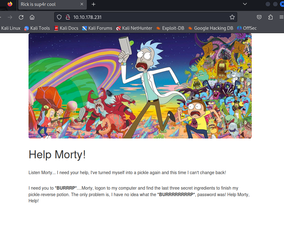 This Rick and Morty-themed challenge requires you to exploit a web server and find three ingredients to help Rick make his potion and transform himself back into a human from a pickle.